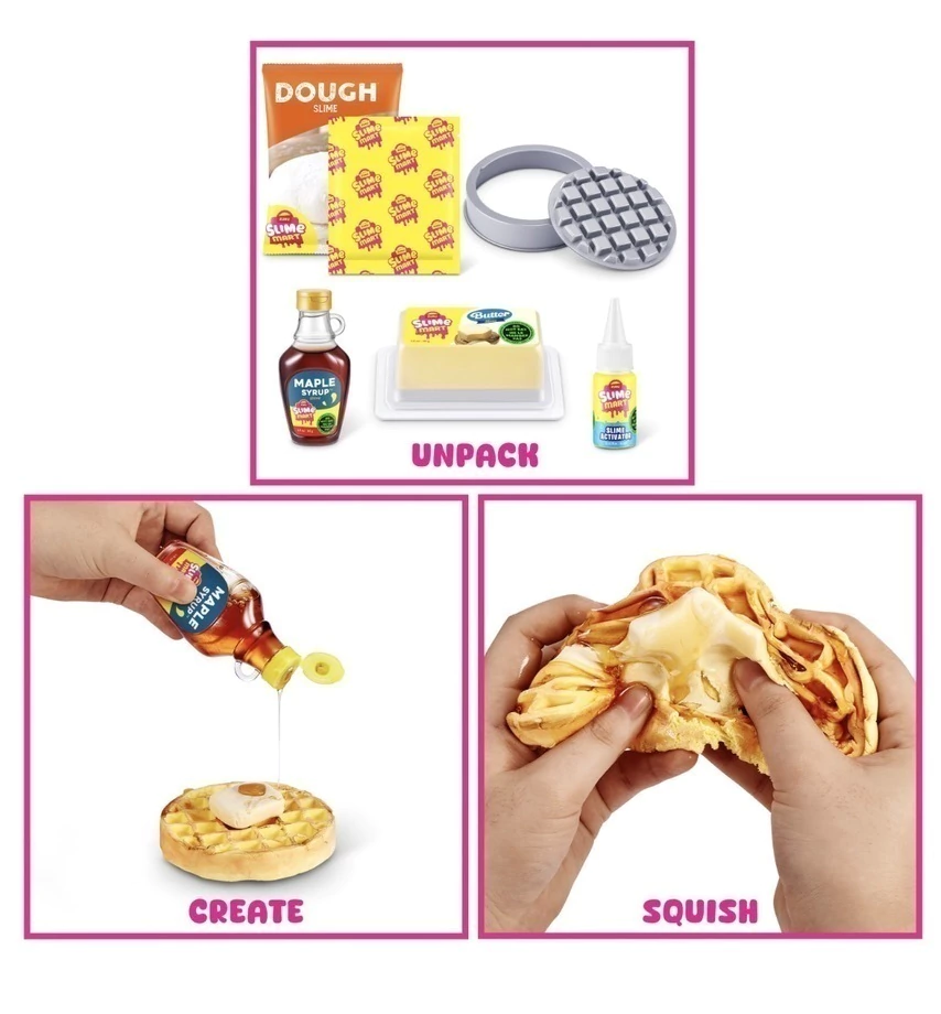 ¡El desayuno más divertido llega en formato de slime! Los chicos pueden preparar y decorar su propio waffle con texturas suaves, toppings y colores brillantes.